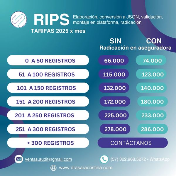 * Plantilla para registros de sus RIPS o recepción en el formato que su sistema de historias clinica lo genere.